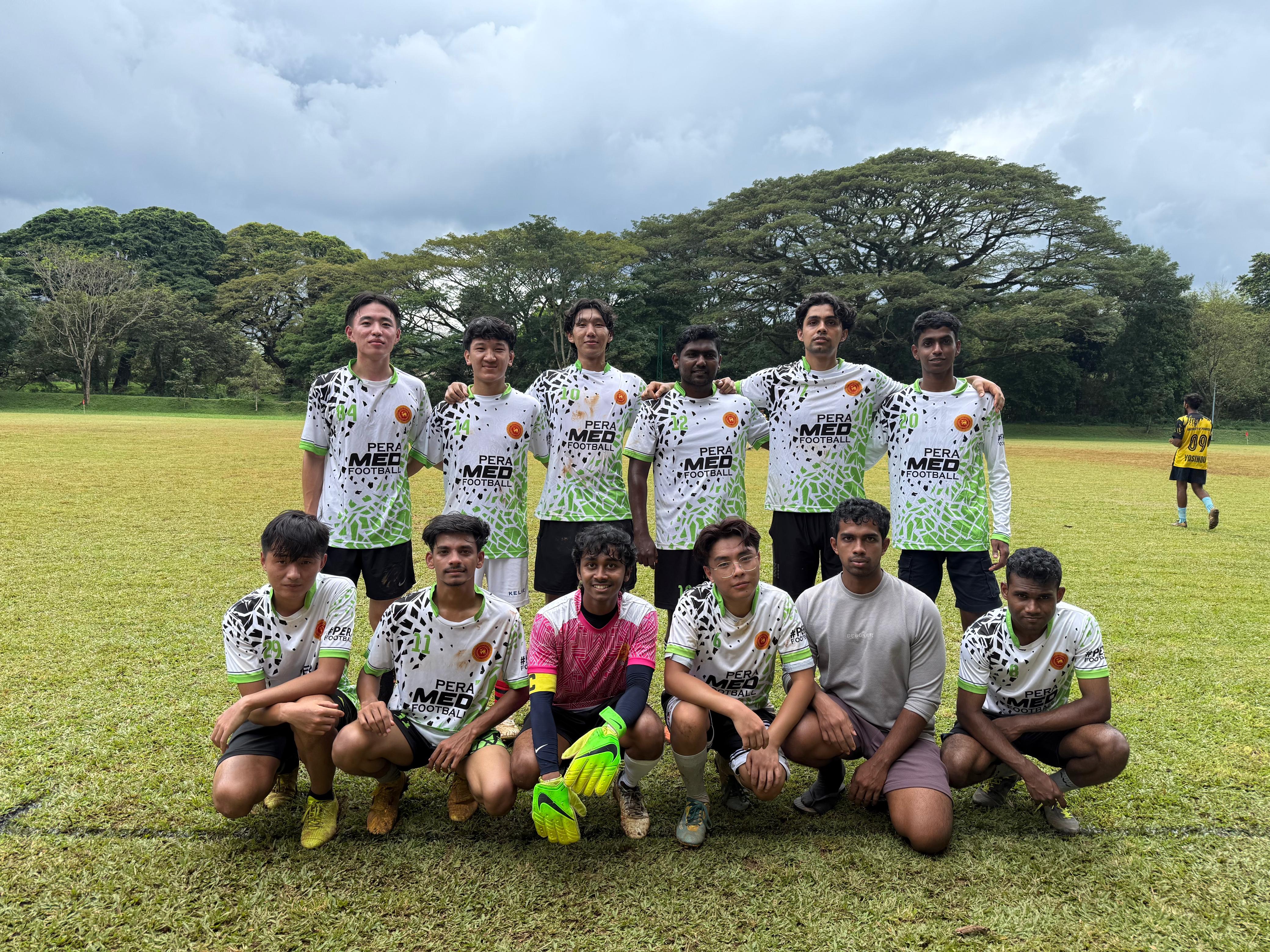The Faculty of Medicine football team delivered a memorable performance at the 2025 Interfaculty Football Tournament held on 22nd November at the University Football Ground, University of Peradeniya. After years of near misses, the team returned with renewed determination, disciplined training, and outstanding team spirit. A dominant 3-0 victory over the Faculty of Arts set the tone, followed by a hard-fought 2-1 defeat against the Faculty of Engineering during the group stage. Having qualified for the knockout rounds, the team bounced back in style with a convincing 3-1 win over the Faculty of Management in the semifinals. The campaign concluded with a sensational performance in the final, as the Faculty of Medicine dismantled the Faculty of Science 7-0 to clinch the championship. This emphatic triumph stands as a true testament to the resilience, quality, and fighting spirit of the team. Kinley Y. Khandu (Batch 20/21) was deservedly awarded the Man of the Match trophy for his outstanding performance