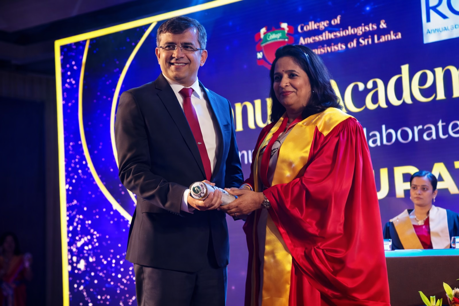 Professor Saman Nanayakkara was awarded the prestigious Honorary Fellowship of the College of Anaesthesiologists and Intensivists of Sri Lanka, in recognition of his outstanding contributions to the fields of anaesthesiology and critical care. The formal citation for this honour was presented by Professor Vasanthi Pinto, highlighting his exemplary service, academic leadership, and lifelong commitment to advancing the profession.