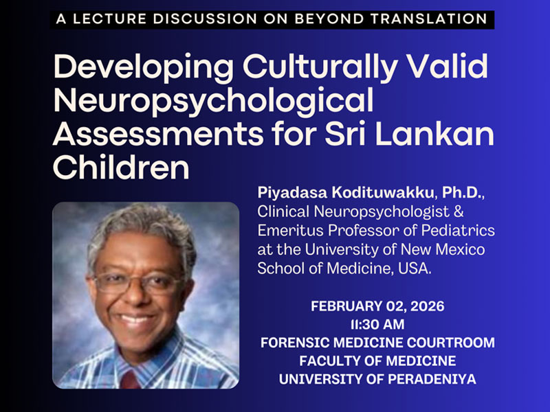 - Diamond Jubilee of Faculty of Medicine, Peradeniya [04-01-2022] ---- See More
